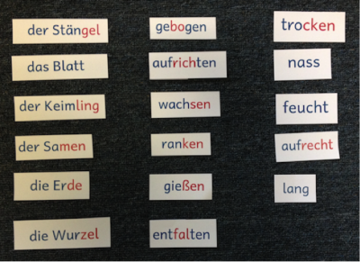 Die Lehrperson elaboriert den Wortschatz zum Thema „Feuerbohne“ auf Lemma- und Lexem-Ebene, indem:
