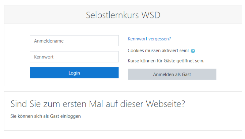 Der Selbstlernkurs liegt auf unserer WSD-Moodle-Plattform. Den Link finden Sie am Ende dieser Anleitung.